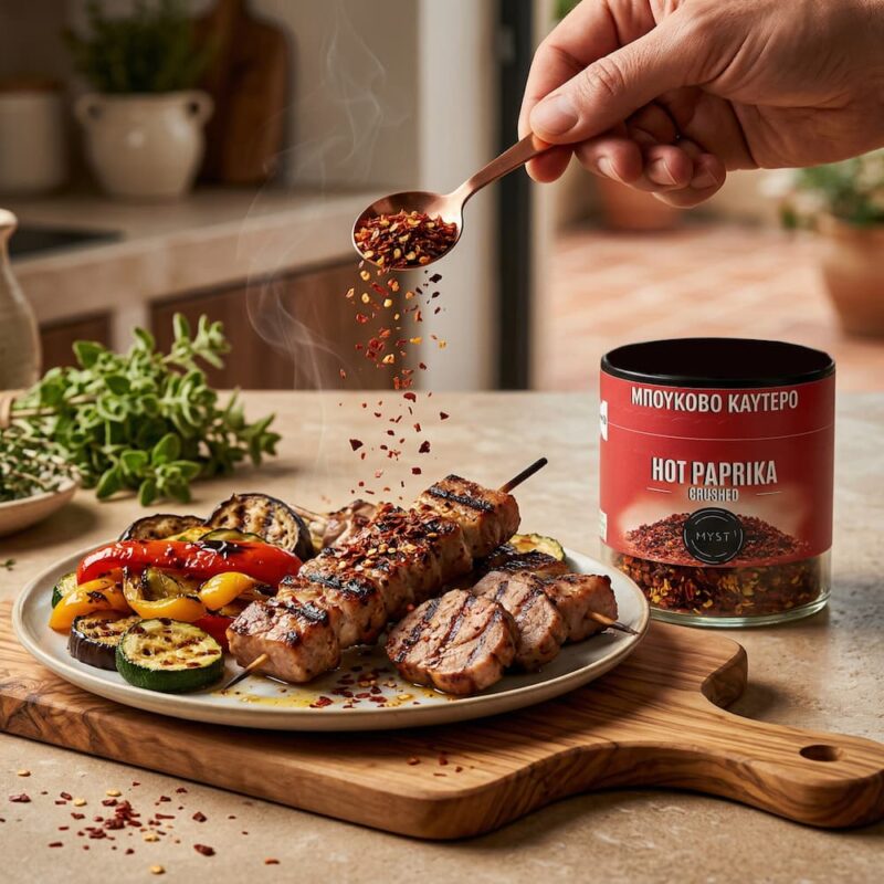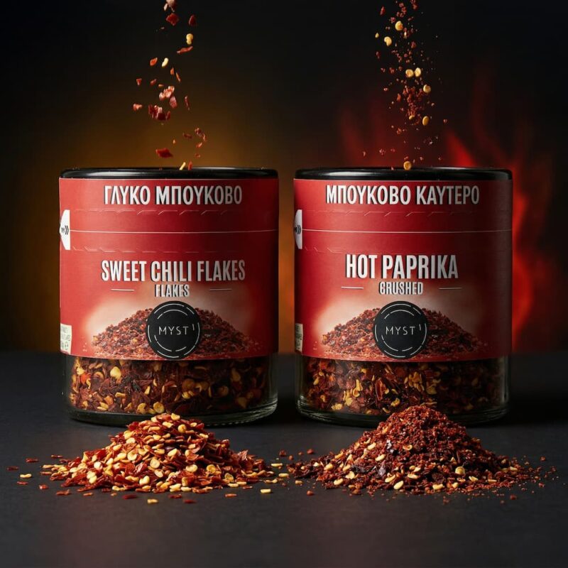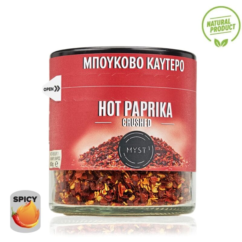 Hot Chili Flakes add bold flavor and character to every dish. Use them in legumes, vegetable stews, soups, roasted potatoes, trahanas, grilled vegetables, pasta, meats, poultry, and seafood to bring out a naturally spicy and aromatic touch.