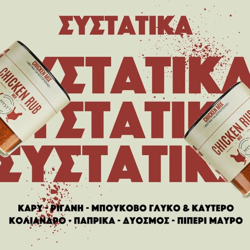 Μείγμα που νοστιμίζει το κοτόπουλο και αποτελείται απο διάφορα μπαχαρικά και άλλα αρτύματα. Το MYST Chicken mix είναι ένα συνδιασμός καρυκευμάτων που θα μεταμορφώσει κάθε πιάτο με κοτόπουλο! Αυτό το καρύκευμα μπορεί να πασπαλιστεί σε ψημένα κομμάτια κοτόπουλου ή ιδανικά να πασπαλίσετε το κοτόπουλο πριν το ψήσιμο.