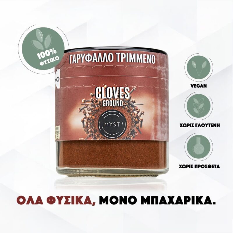 Τριμμένο γαρύφαλλο υψηλής ποιότητας με έντονο άρωμα. Ιδανικό για γλυκά, φαγητά και ροφήματα.