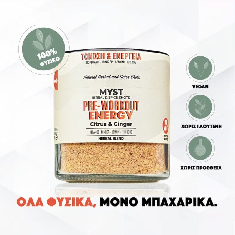 PRE-WORKOUT ENERGY είναι μια καθαρή, φυτική φόρμουλα προ-προπόνησης με πορτοκάλι, ιβίσκο, τζίντζερ και δυόσμο. Προσφέρει φυσική, δροσερή ενεργοποίηση χωρίς καφεΐνη, ιδανική για όσους θέλουν ελαφριά, καθαρή και αναζωογονητική ενέργεια πριν την άσκηση. Σχεδιασμένο για συγκέντρωση, ζωντάνια και αθλητική διαύγεια.